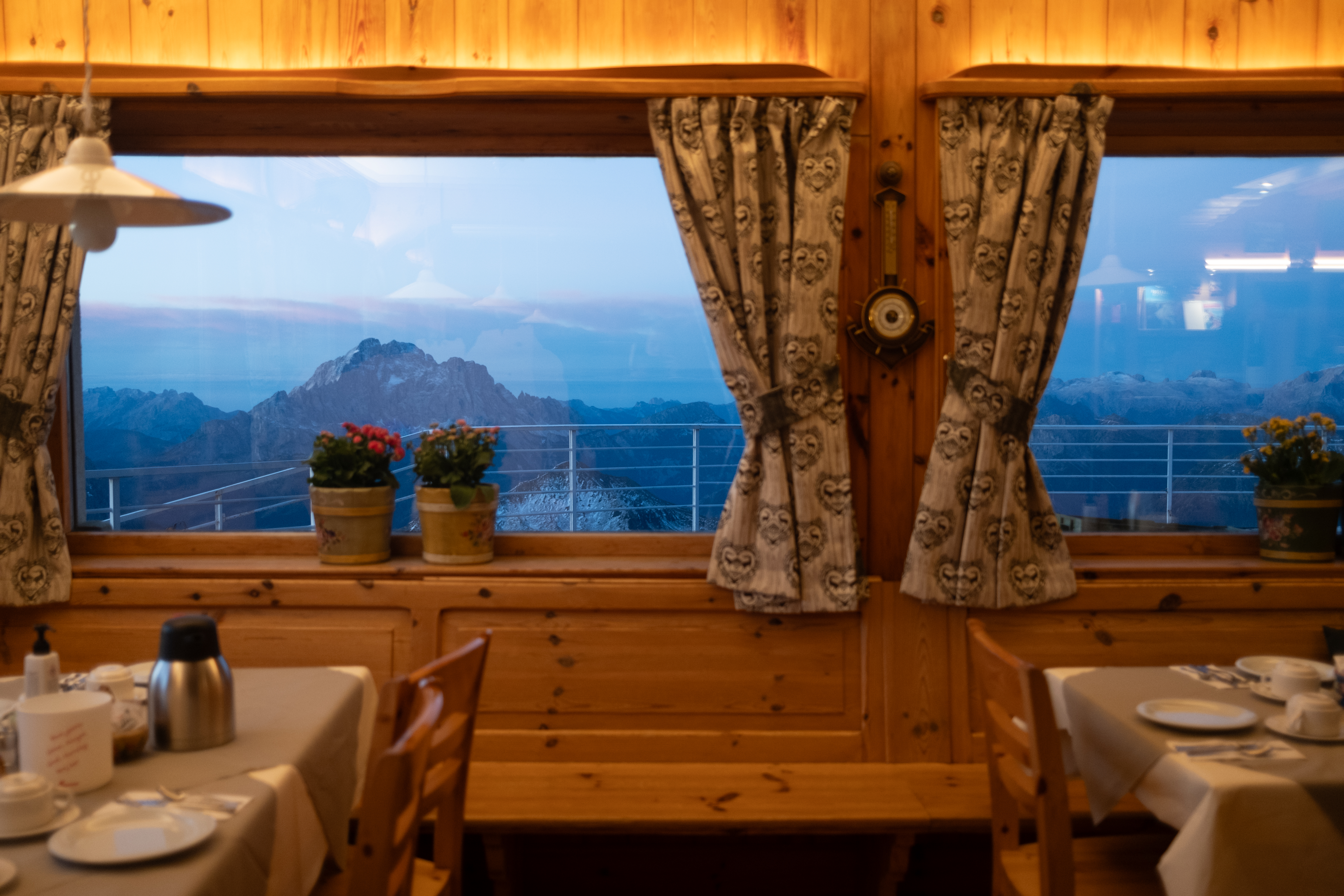 I made it at the end, and when I was on the very last path towards Lagazuoi, Rick was standing at the terrace overlooking the trail, and he encouraged me to keep going. "You're almost there!" he said. His friends were behind me, also struggling, but at the end of the day we all made it, and I saw them again at dinner time. Karen and Juan Carlos were inside, and we also met our Australian friend again Paul. After a quick sketch outside (somehow I still found the energy to sketch), we all caught up over dinner and started planning for tomorrow's trek and discussed all of our options: Route 442 through the forest to Nuvolau, the potentially icy war tunnels, or just taking the ski lift down.