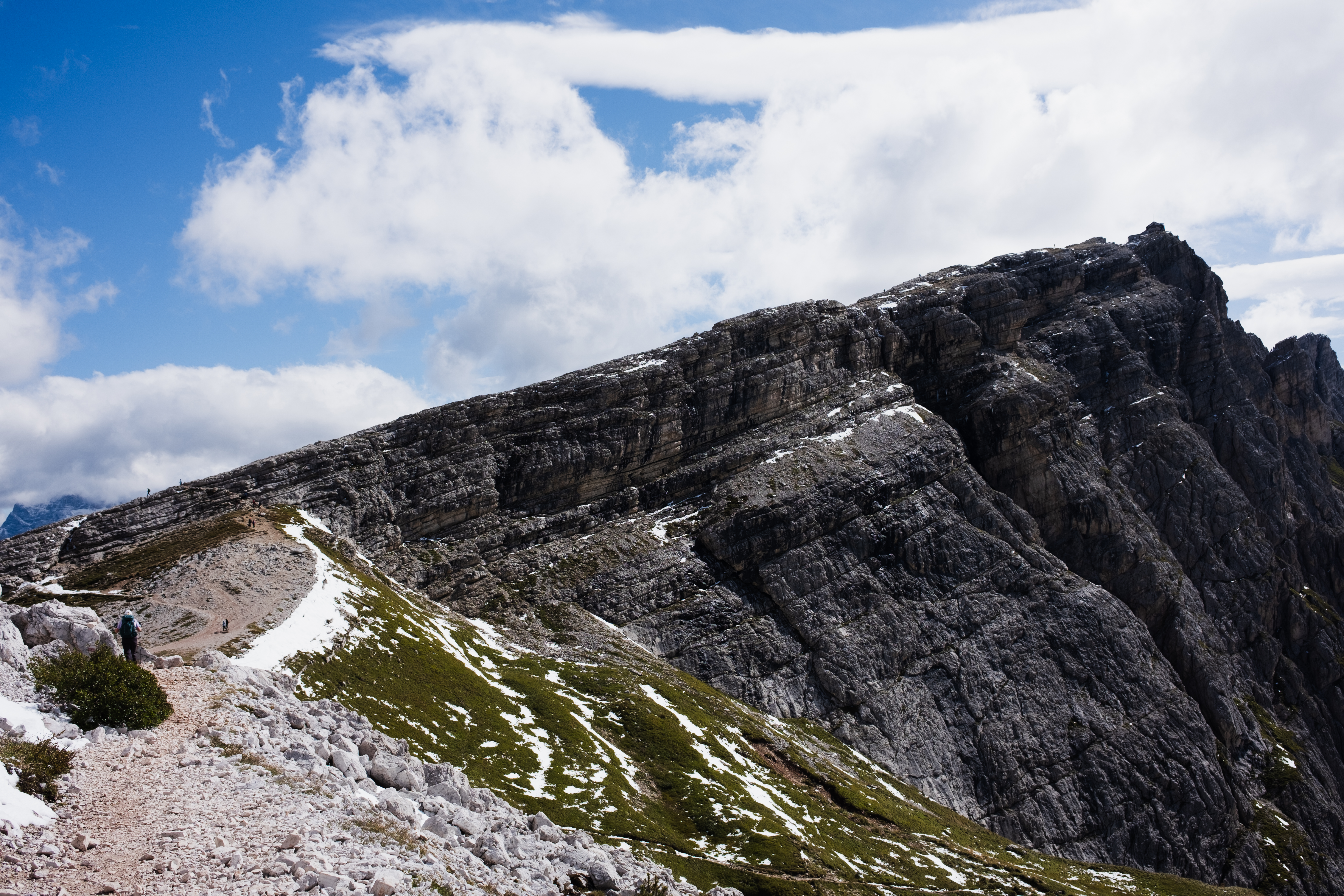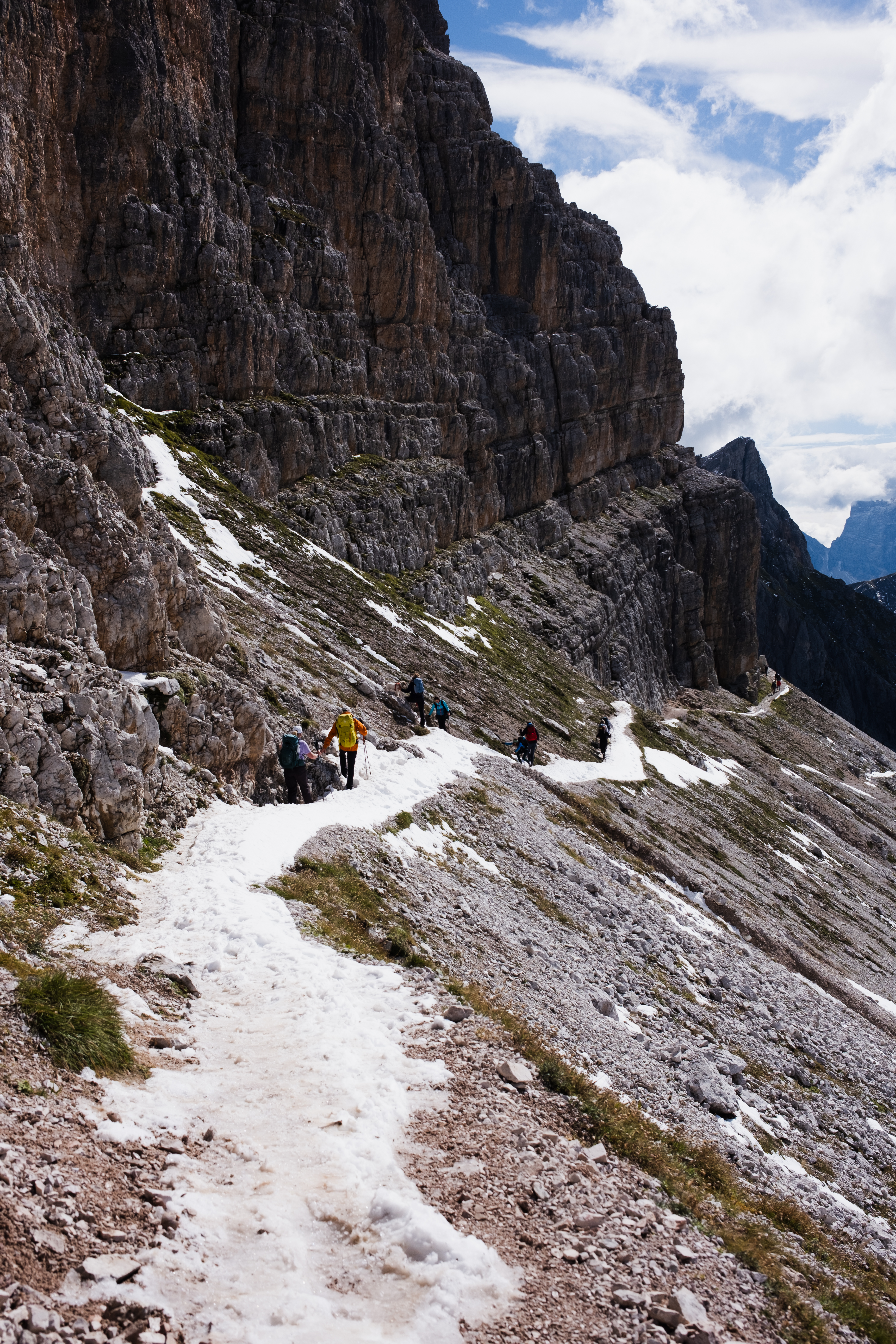 Just before Rifugio Nuvolau, another challenge was waiting for me: a narrow icy path with a scree slope dropping away beside it. My running shoes weren't ideal for these conditions, but the spikes Brynn had insisted on proved invaluable once again.