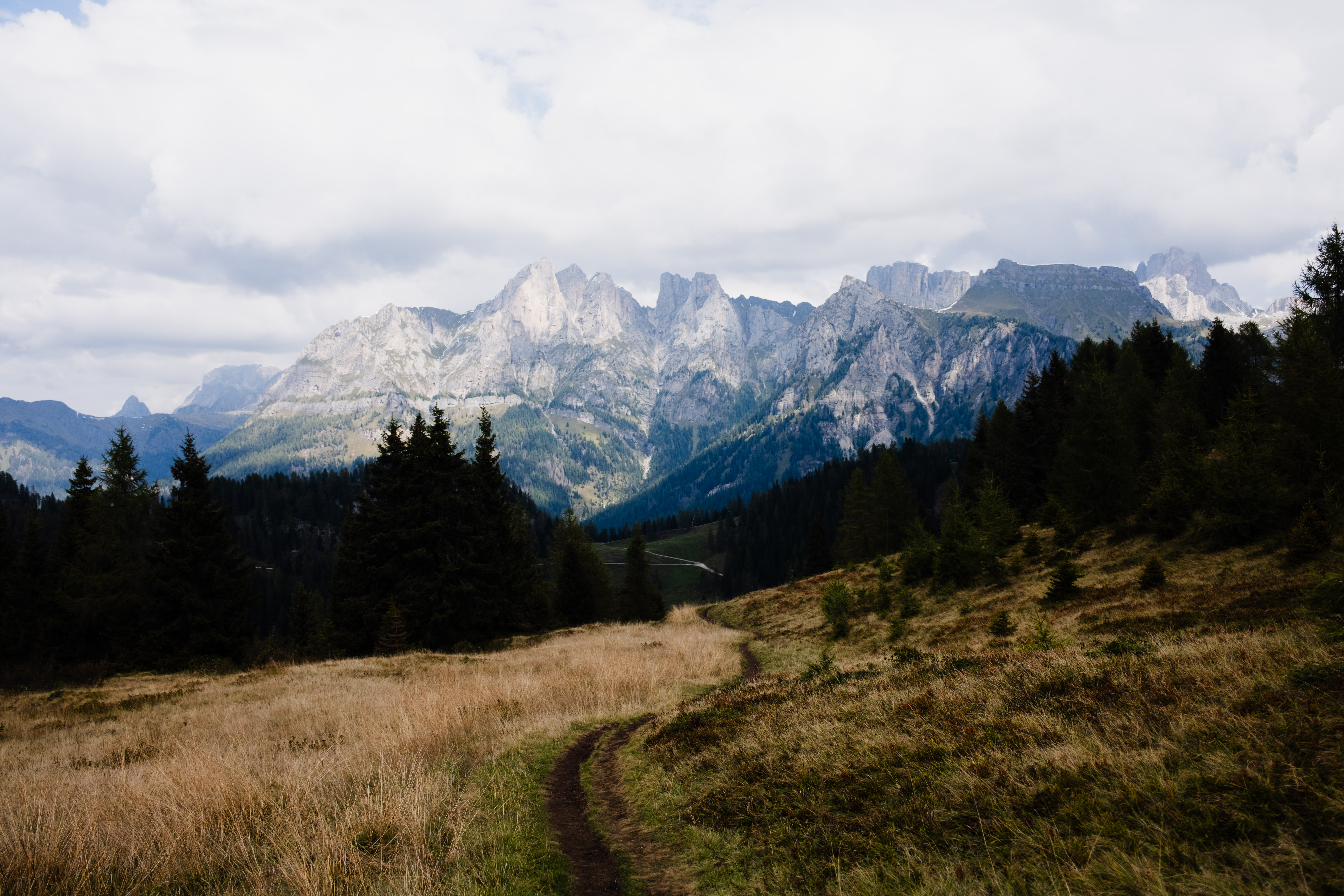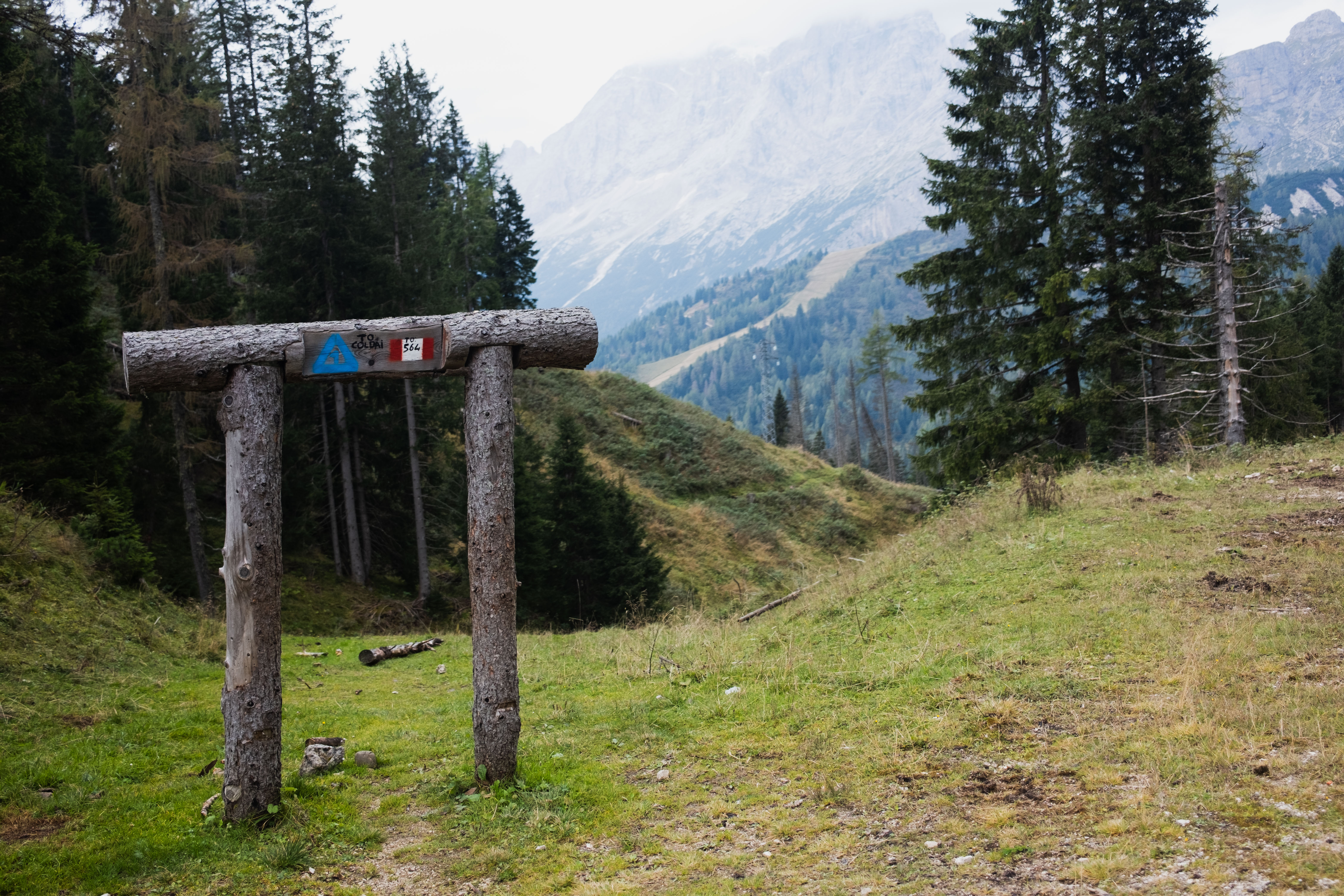 The morning trail towards Coldai was a gentle start: a jeep track followed by a trail through the woods that was mostly was mostly still wet from yesterday's shower. Everything gleamed green, such a contrast from the snow-covered paths of my first days. I quickly reached Passo Staulanza and found myself at two diverging paths: a trail following the highway, or another track through the woods with a sign that says "to Coldai" which looked inviting and looked more like a real hiking trail. However, this trail doesn't align with the GPX trail that I had on my phone and the guidebook. For once, I trusted the official route and stuck to the highway until I reached the switchbacks toward Coldai.