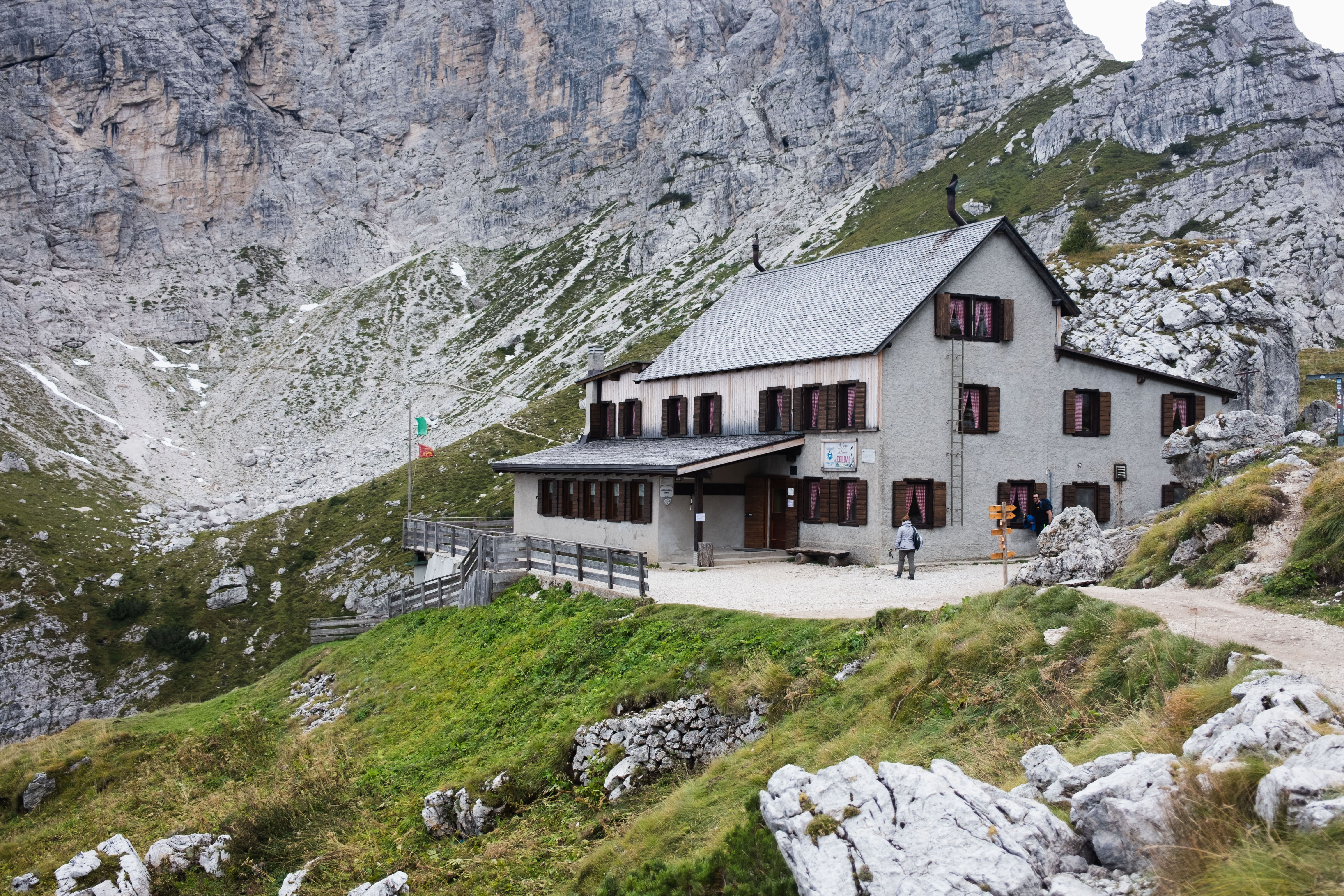 Rifugio Coldai was quiet when I arrived, just a few hikers stopping for lunch before continuing their day. Some people were stopping by for lunch and the they went on their journey for the day. I recognized one Australian hiker from Città di Fiume, now alone where he'd had two companions before.But this time he was all alone. He said that one of his friends was injured, and the other one was accompanying her back to town. He said he might continue today—he's heading to Vazzoler—and tomorrow, but then that's it. He's not used to hiking alone, he said.