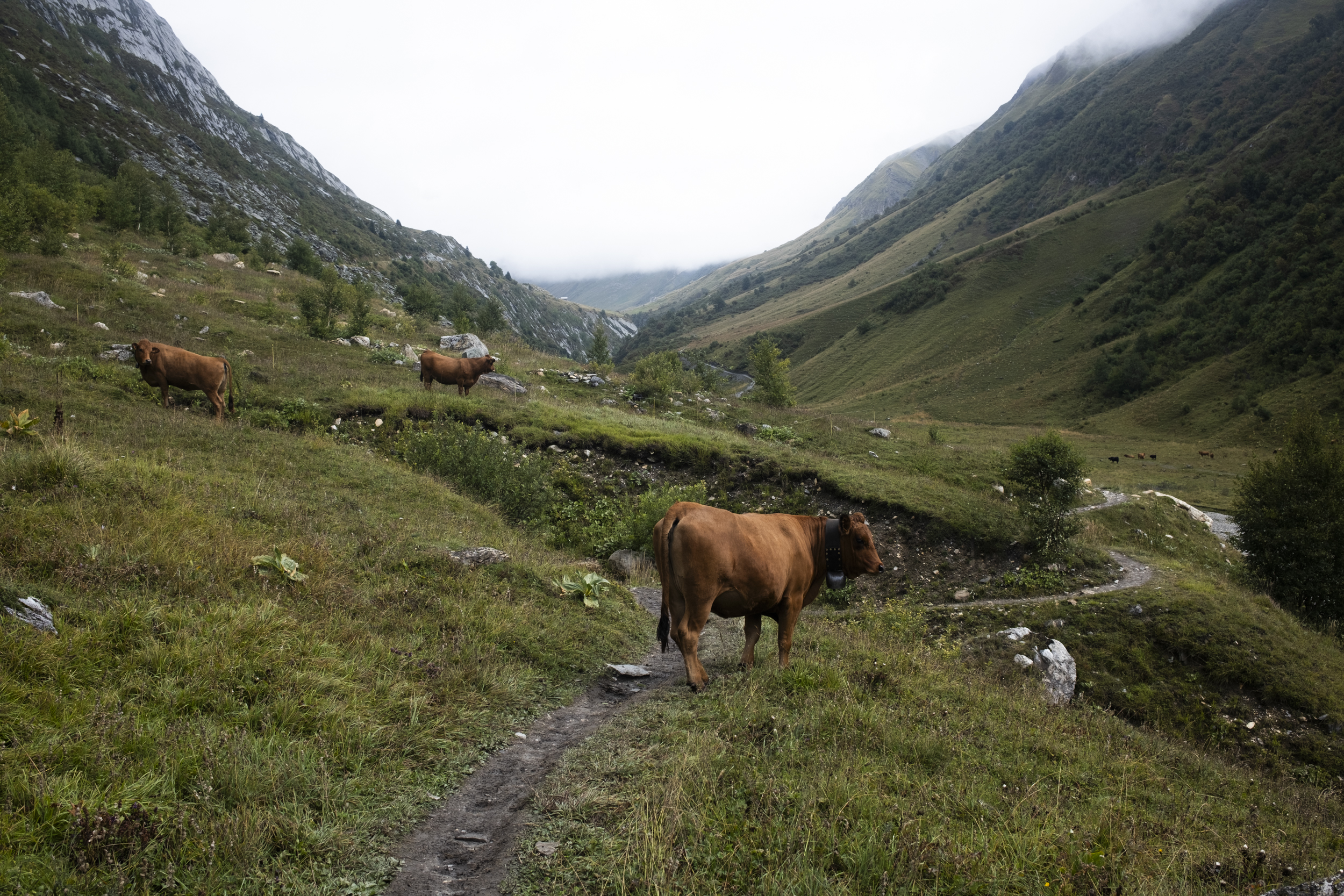 Today was another day where we had two options of routes to take: either we do the normal route would take us down to a town called Les Chapieux, or we take the higher route which would lead us to one of the highest vantage points on the TMB called Col des Fours. We both agreed that taking the normal route would be better for us, since we had taken the variant on the first day anyway, and looking outside it seems that today will be another misty day, meaning that there will most likely be no views. We opted for the easy option to be kinder to our knees and legs today.
