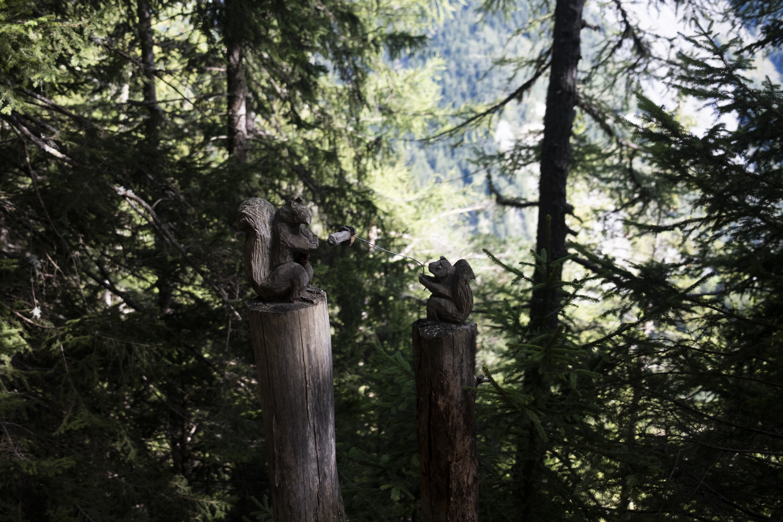 We headed to the last village, Issert, and afterwards it would be a steady climb to Champex-Lac. We were in shades most of the time, since we were still below the tree line, but the warmth combined with the mileage really tired out my legs. Apparently this trail was also called the didactic mushroom trail and the trail has a mascot called "Charlotte le Marmotte". Along the way there were many cute wood-stump carvings and we also came across a large mysterious cave that had no sign whatsoever, we also couldn't find any information about it on Google Maps on AllTrails. It was really dark and no one was there so we decided to get the hell out of it as soon as we stepped in.