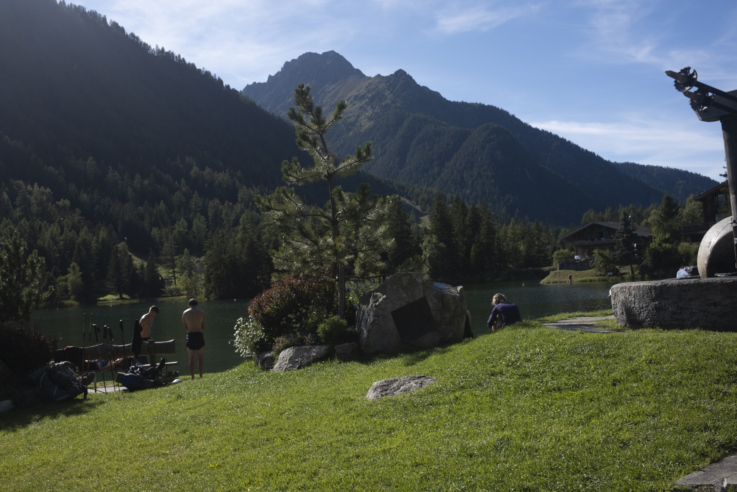 Champex-Lac is a large lake and it was crystal blue when we got there. I mean it was a harsh hiking weather but it was a perfect one for lounging around in the lake, eating ice cream, that sort of stuff. I really wish I was not in my hiking outfit and I wish we didn't have to rush to our hut! It made me think of how Anish and Sloane would have two days to spend here and I thought they made a really good decision to do their rest days here.