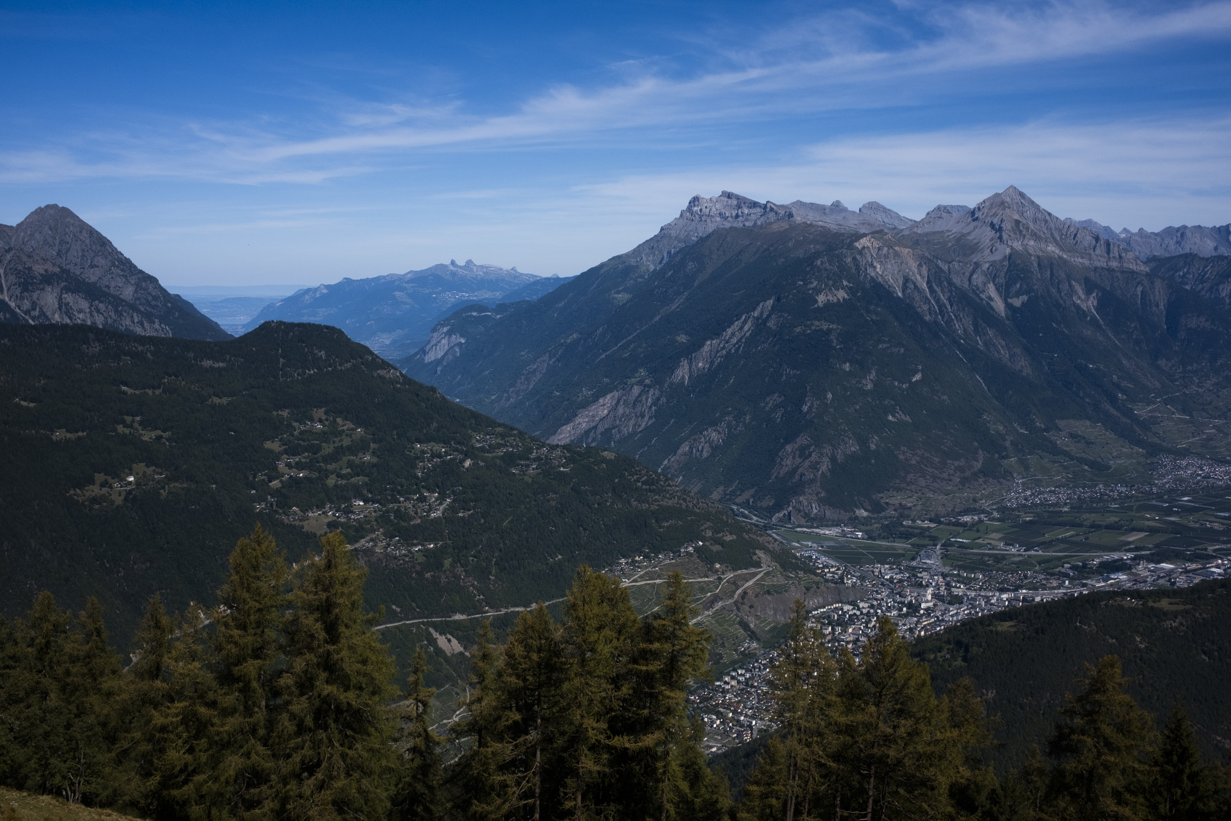 Finally we got to the top and the ground flattens, and from here we had a sprawling view of the district of Martigny from above. Staying in Martigny was going to be our last resort if we couldn't find any bed, but staying in a town quite off the trail means we would probably have to depend on the bus to get from and back to the trail.