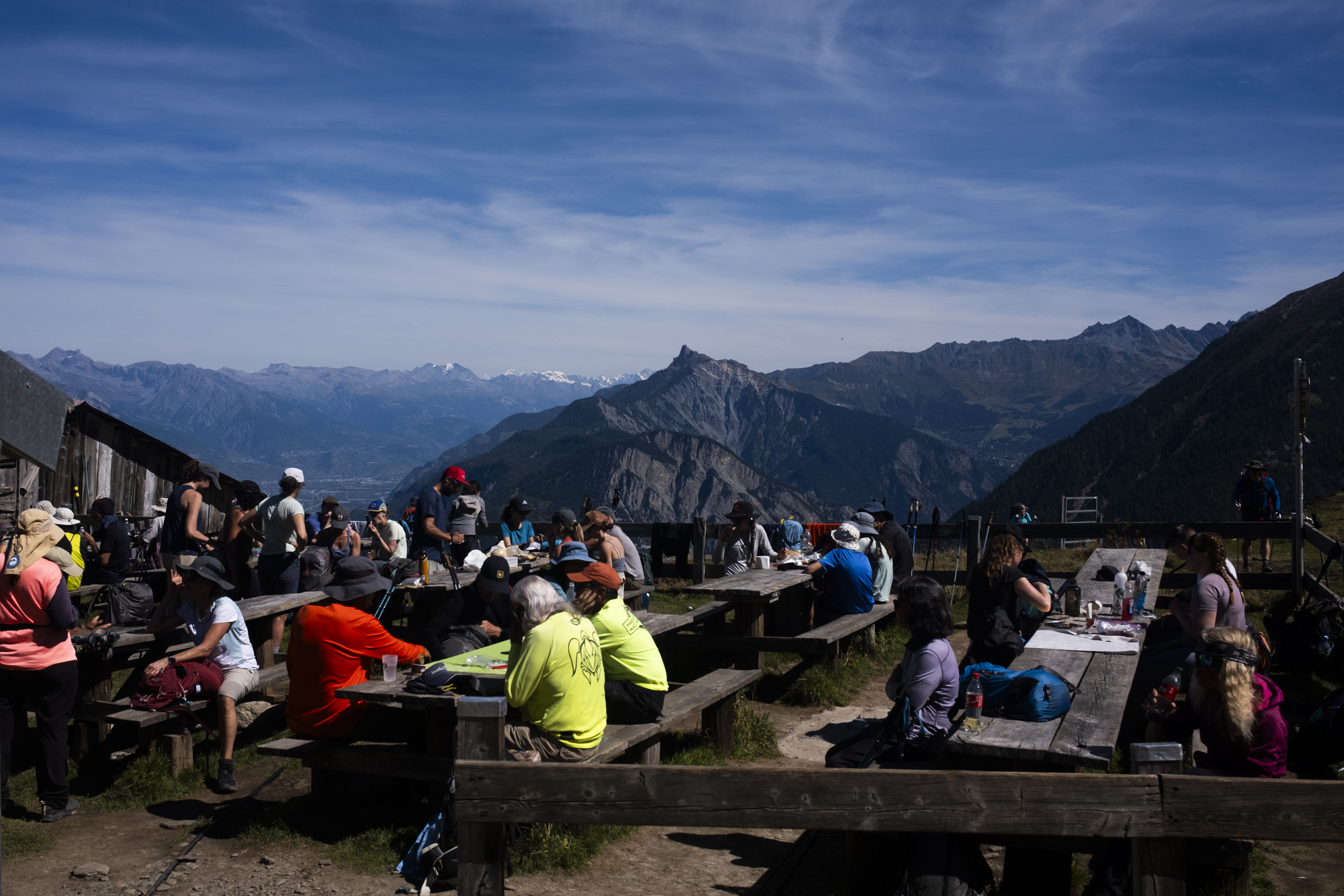 Afterwards it was all downhill all the way to Col de la Forclaz, which - staying true to the theme today - was also the busiest mountain pass we encountered so far, far from the remoteness of Col de la Croix du Bonhomme for example. I learned from the stickers on the door of the hut that the GR and the Haute Route also passes by this mountain pass which probably explains the crowd.